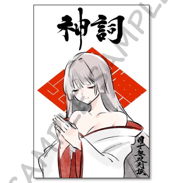 【概要】 神様の威厳を纏う、神々しい神詞が描かれたエアフレッシュナーです。『神に対する畏怖』を表現する手段としてアングラな要素を大胆に取り入れ、既出デザインを再構築しました。 香りには『マリン』を採用。ベルガモットなどの柑橘類やウォーターフルーツ、ハーブ系の香りが合わさった、海を連想させる爽やかな香りです。香りが無くなった後もそのままお守りとして飾ったり、お気に入りの香水を染み込ませて再利用するなど、様々な楽しみ方が可能です。 愛車のルームミラーやウインカーレバーなどに吊り下げてご使用いただくことは勿論、お部屋の芳香剤としてもご活用いただけます。 【参考】 縦:9.5cm 横:7.5cm アロマ:マリン 【物語】 普段は超が付くほど温厚で優しい神詞だが、咲羅と同様に彼女もまた人智を超えた力を持つ守護神。“知識を司る神様”と聞くとあまり強くなさそうに感じるが、それは完全に誤りである。 これは筆者が以前、神詞の大好きな日本酒を誤って飲み干してしまった時の体験談だ。冷たい視線が背中を刺し、振り返ると能面のような笑みを顔に貼り付けた神詞と目が合う。次の瞬間私の視界がグニャグニャに曲がり、極彩色の宇宙に投げ飛ばされる。夢か現か、ふわふわとした快感と無限に広がる絶望が入り乱れ、パニックになる寸前で現実世界に引き戻された。 これが神詞の恐ろしい能力で、鍛えることのできない無防備な“心”に直接干渉することができる。普段は対象のメンタルケアなどポジティブな使い方をするが、当然攻撃に転用することも可能。 先ほど見せられていた幻覚はほんの脅しらしく、手加減しなければ容易に再起不能に陥るのだとか。確実に言えることは、神詞は咲羅以上に怒らせてはいけない相手だということ。すみませんでした。