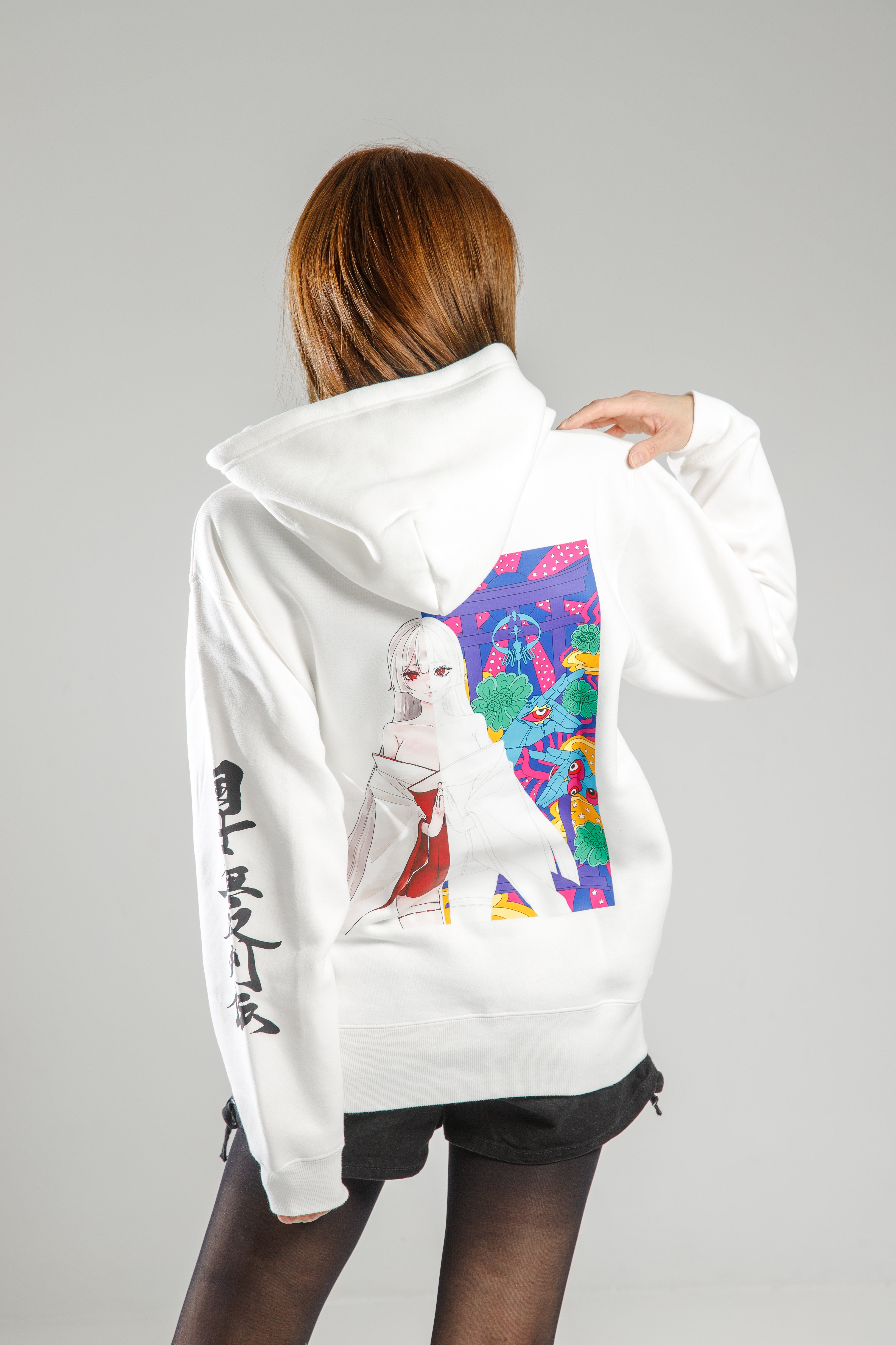 日本文化の美しさとアングラ感を調和させ、国士無双列伝の世界観を表現しました。また、縦ロゴを用いた袖プリントはストリート感も演出し、カーカルチャーとの親和性も非常に良好です。