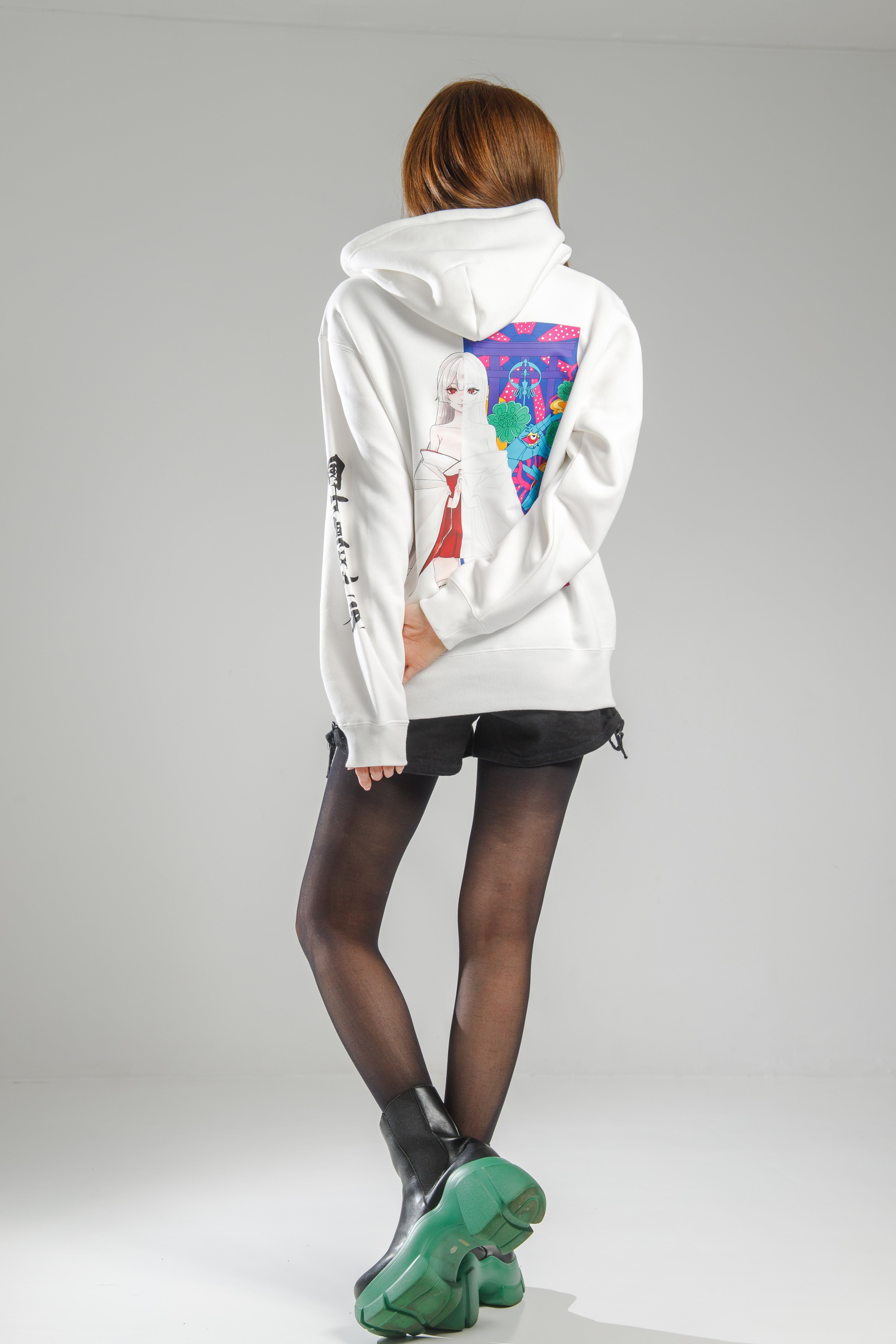 神様の威厳を纏う、神々しい神詞がプリントされたパーカーです。