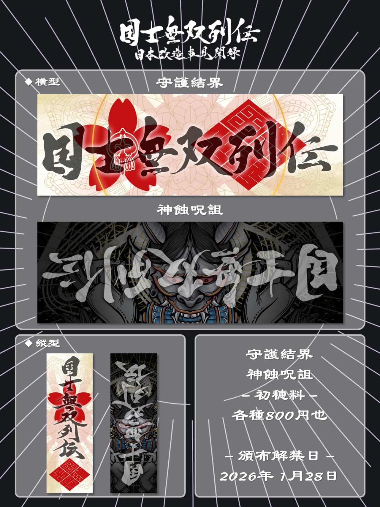 国士無双列伝の2026年活動方針は、ブランドコンセプトである『和』の要素をより一層強めていきます。その第1弾として投入するのが『守護結界』と『神蝕呪詛』の2種で、神の持つ神聖さや怖さを感じていただきたいです。