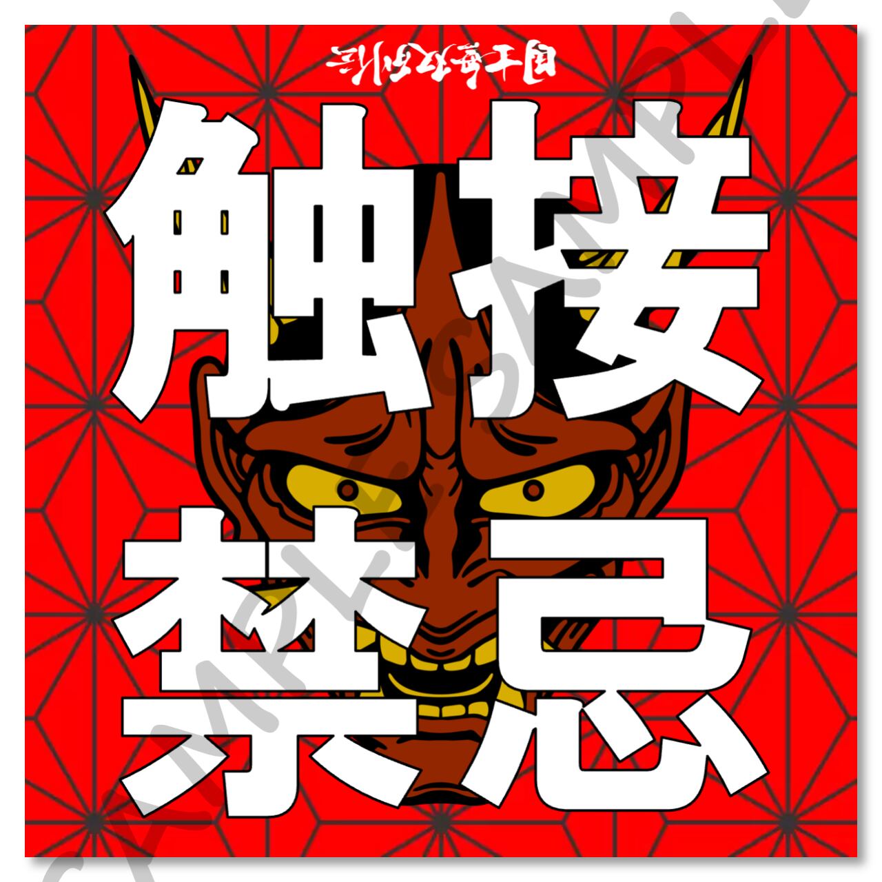 不気味な少女が身に付けている般若面が、強烈なプレッシャーを放ち同意無き接触を禁じるステッカーです。自動車を所有していると、イベントで展示中にボディを触られる、駐車場に侵入されて名刺を挟まれるなど、非常識な行為に遭遇することは珍しくありません。